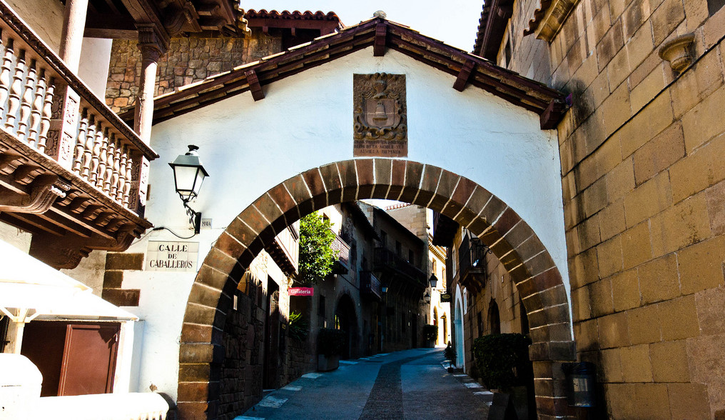 Die Bauwerke sind Nachbauten aus allen Epochen und Regionen Spaniens. Man findet hier ein romanisches Kloster, eine Kirche, Paläste und sogar ein Rathaus. Betritt man das spanische Dorf schreitet man durch einen Nachbau des Tores des heiligen Vincent eines der neun Tore,die die Stadt Europas Ávila umgeben. Man findet hier auch Straßen, wie sie in Andalusien typisch sind.