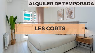Vollständig möblierte 91 m2 große Wohnung im ViertelLes Corts zur monatlichen Miete. Die Immobilie ist monatelang vermietet und befindet sich im fünften Stock, daher spielt das äußere Tageslicht eine wichtige Rolle. Das Haus verfügt über drei Doppelzimmer , eine Büroküche mit modernsten Geräten, die mit einem Wohn-Esszimmer mit Sofas und Fernseher mit Zugang zu einem Balkon verbunden ist, zwei Badezimmer mit Dusche, ein Büro und eine Waschküche Zimmer. Die Wohnung ist mit Klimaanlage, Heizung, Waschmaschine, Trockner, Internet und Geschirrspüler ausgestattet.