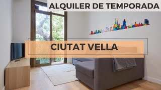 Piso de 45 m2 en alquiler temporal (desde 32 días hasta 11 meses) en el distrito de Ciutat Vella de Barcelona. La vivienda cuenta con una habitación doble, un salón-comedor con salida a balcón, cocina americana y un baño con bañera. Por otro lado, el inmueble dota de aire acondicionado, calefacción, conexión a internet mdiante fibra y lavadora.