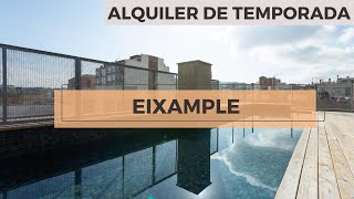 Vivienda amueblada y equipada de 65 m2 en alquiler temporal (de 32 noches hasta 11 meses) en el distrito de Eixample de Barcelona. El inmueble cuenta con 2 habitaciones, una con cama doble y otra con cama individual, una cocina americana conectada a un salón-comedor con salida a balcón y 2 baños con plato de ducha. Asimismo, también dispone de despacho, terraza y piscina comunitaria, conexión a internet mediante fibra, aire acondicionado, calefacción y lavadora.