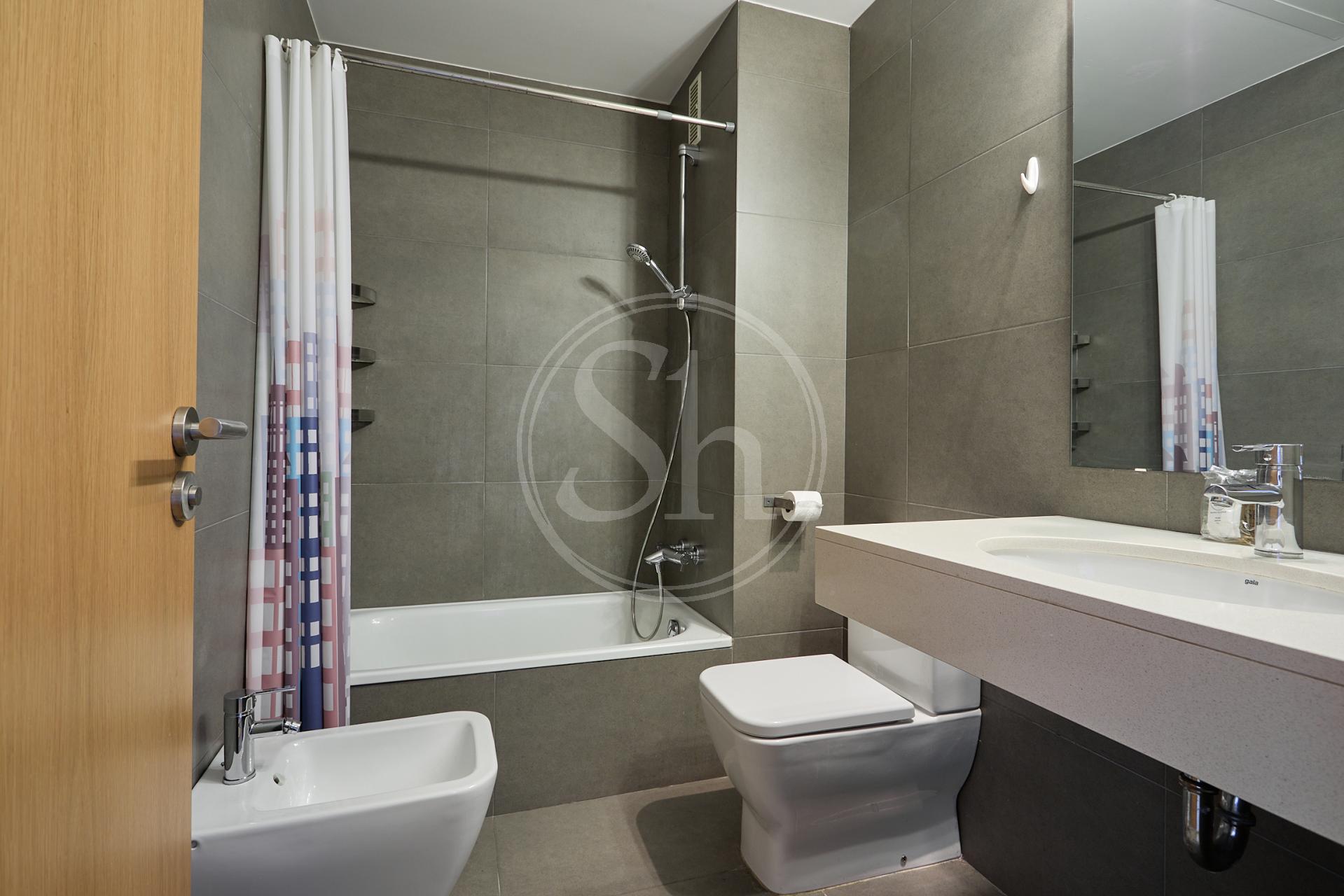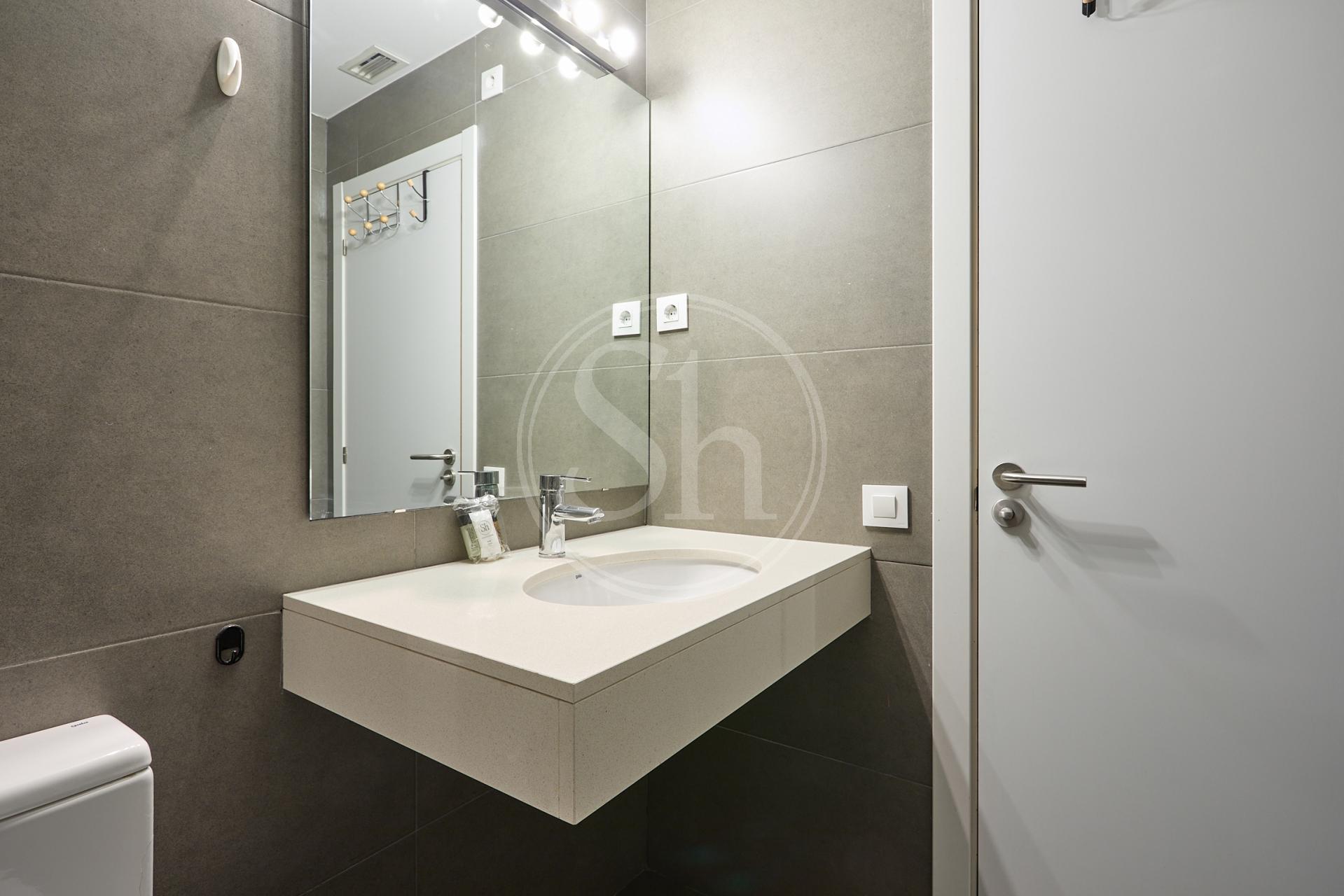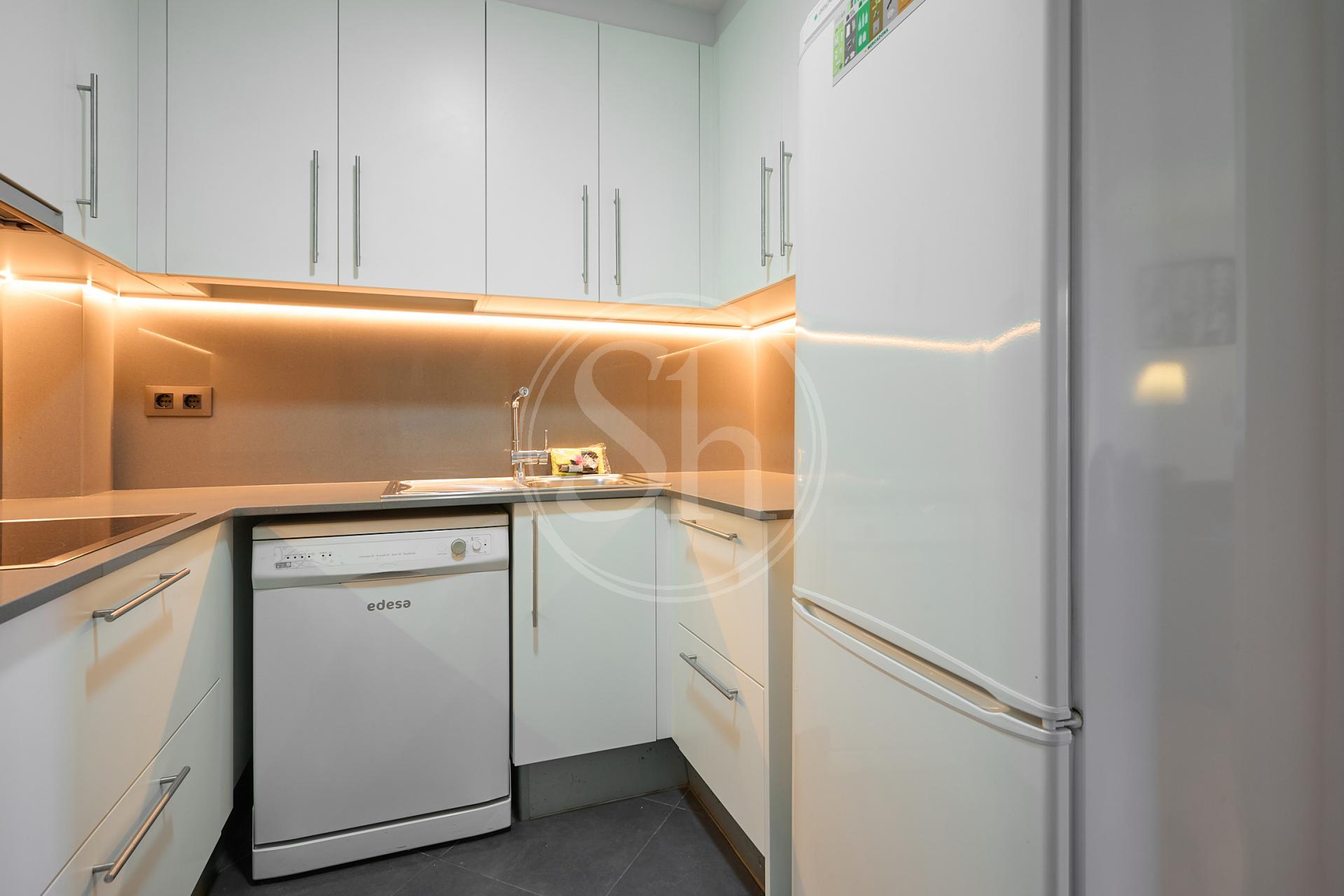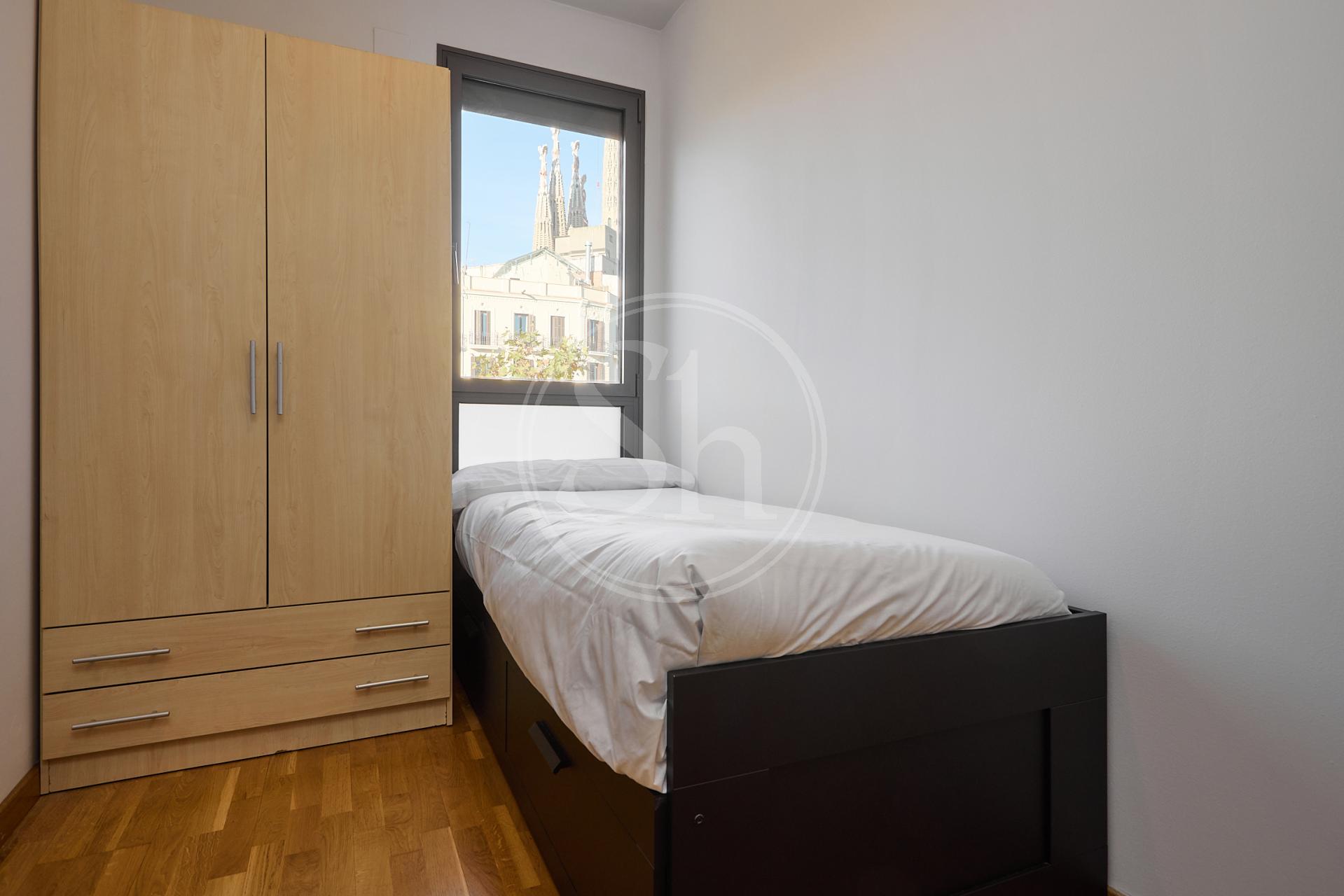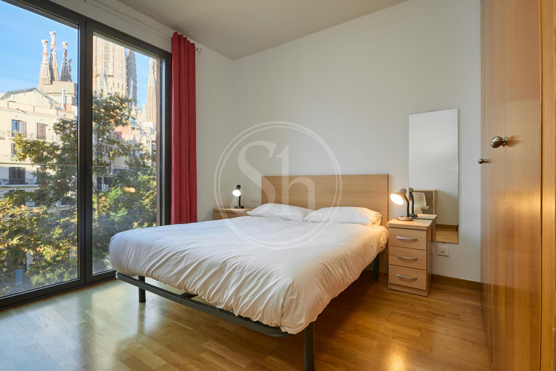 ShBarcelona presenta este exclusivo apartamento de 66 m², totalmente amueblado y equipado, situado en una finca con ascensor a escasos metros de la emblemática Basílica de la Sagrada Família. La vivienda ofrece una distribución práctica y confortable: dispone de dos dormitorios —uno con cama doble y otro con cama individual—, un baño completo con ducha, un aseo de cortesía, cocina americana completamente equipada y un acogedor salón-comedor con sofá-cama.